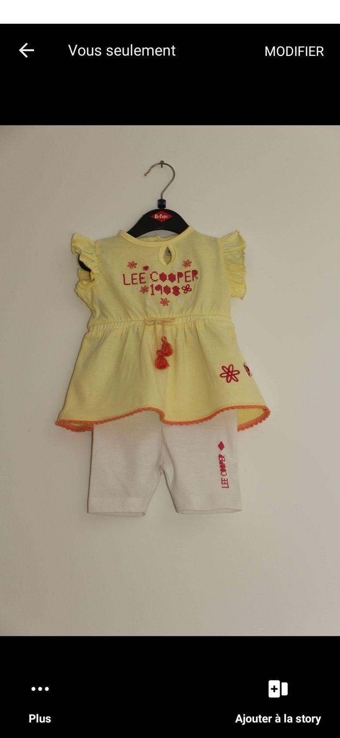 Bonjour, Je vends un ensemble bébé fille (tunique et legging). Lee Cooper