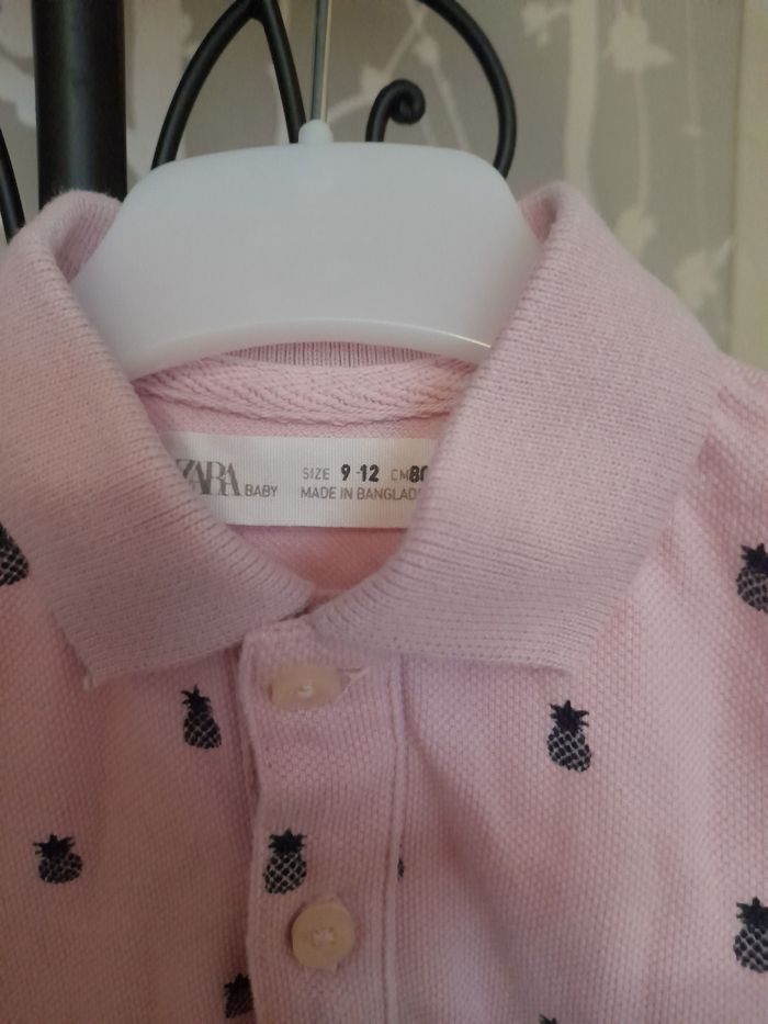 Polo Zara taille 9-12 mois très bon état jamais servi rose pale avec des ananas noir