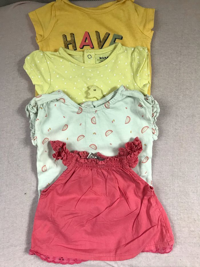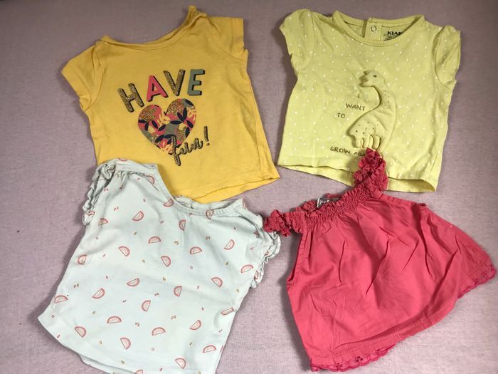4 hauts pour bébé fille en très bon état Possibilité de venir récupérer Différentes marques 1 mois - 3 mois