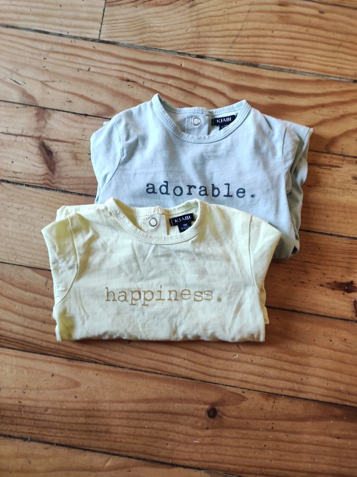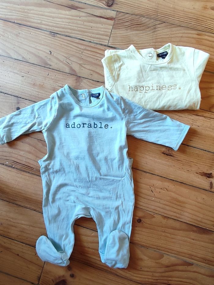1 lot de 2 grenouillères légères taille 3 mois (Je conseille à partir de 2 mois) bleu clair et jaune clair Mon bébé les a porté 1 ou 2 fois