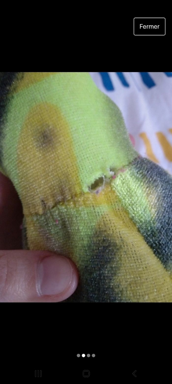 Peluche gagnée lors d'une fête foraine. Présente plusieurs déchirures, est assez abîmée. Bon état.