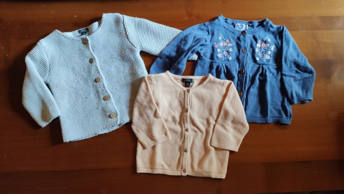 3 gilets fille 6 mois en très bon état. Différentes marques. #kiabi #giletsfille6mois #gilet