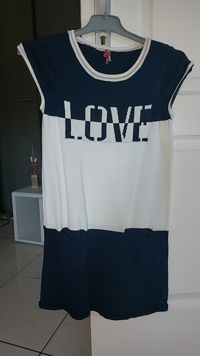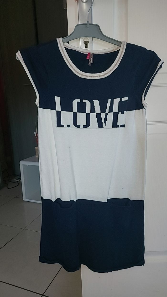 Robe bleu marine et blanche Avec 2 petites tâches