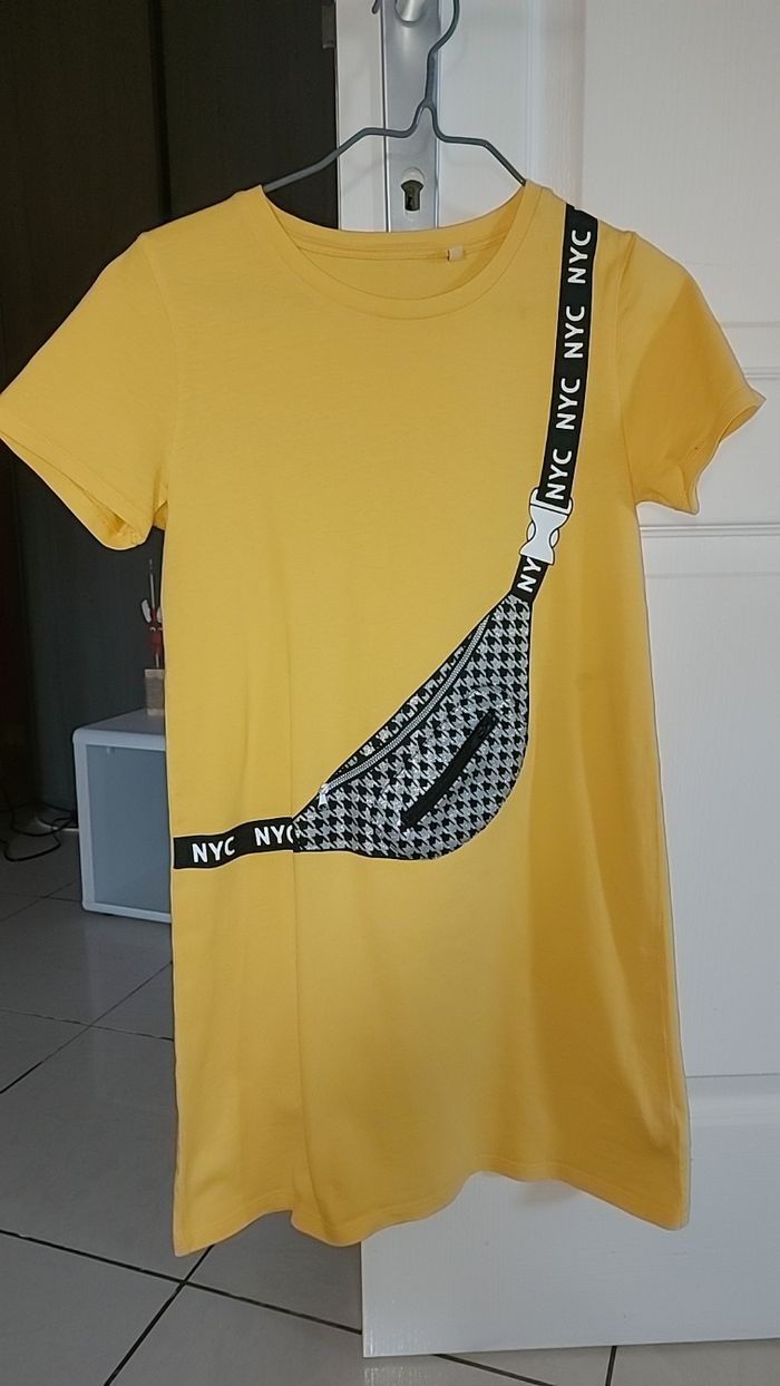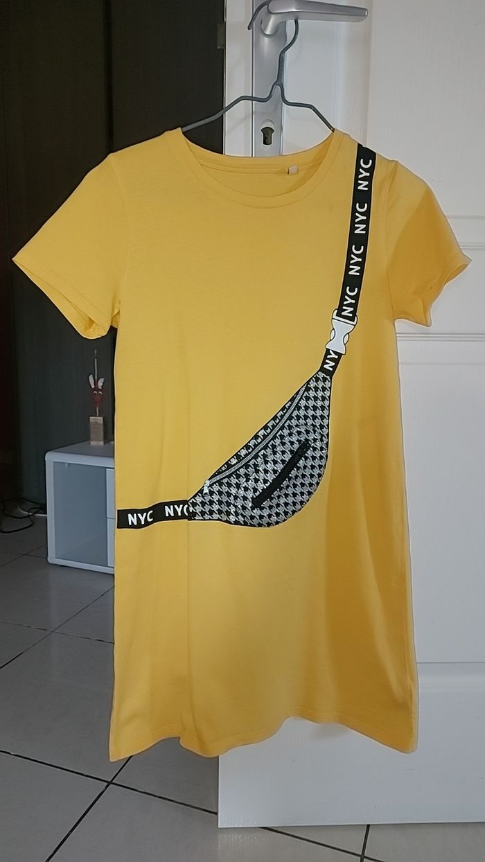 T-shirt long peut être mis comme une robe Couleur jaune avec dessin dessus