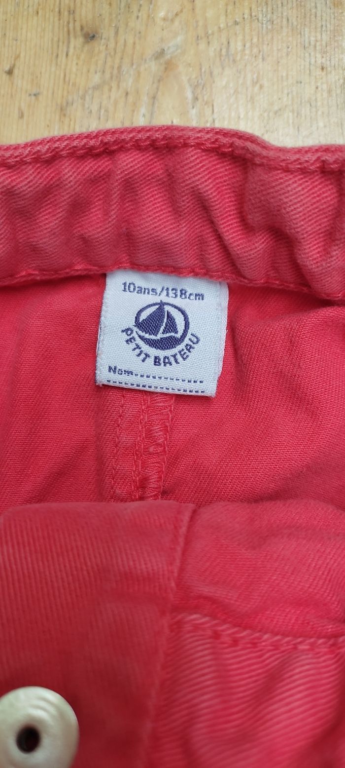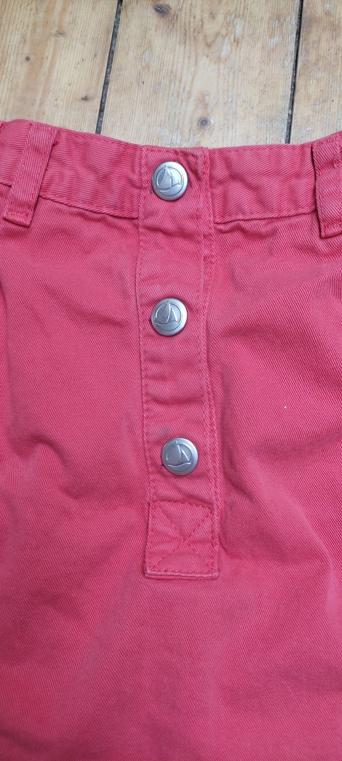 Jupe petit bateau 10 ans rouge corail , petites taches près des boutons mais encore très jolie , taille élastiquee