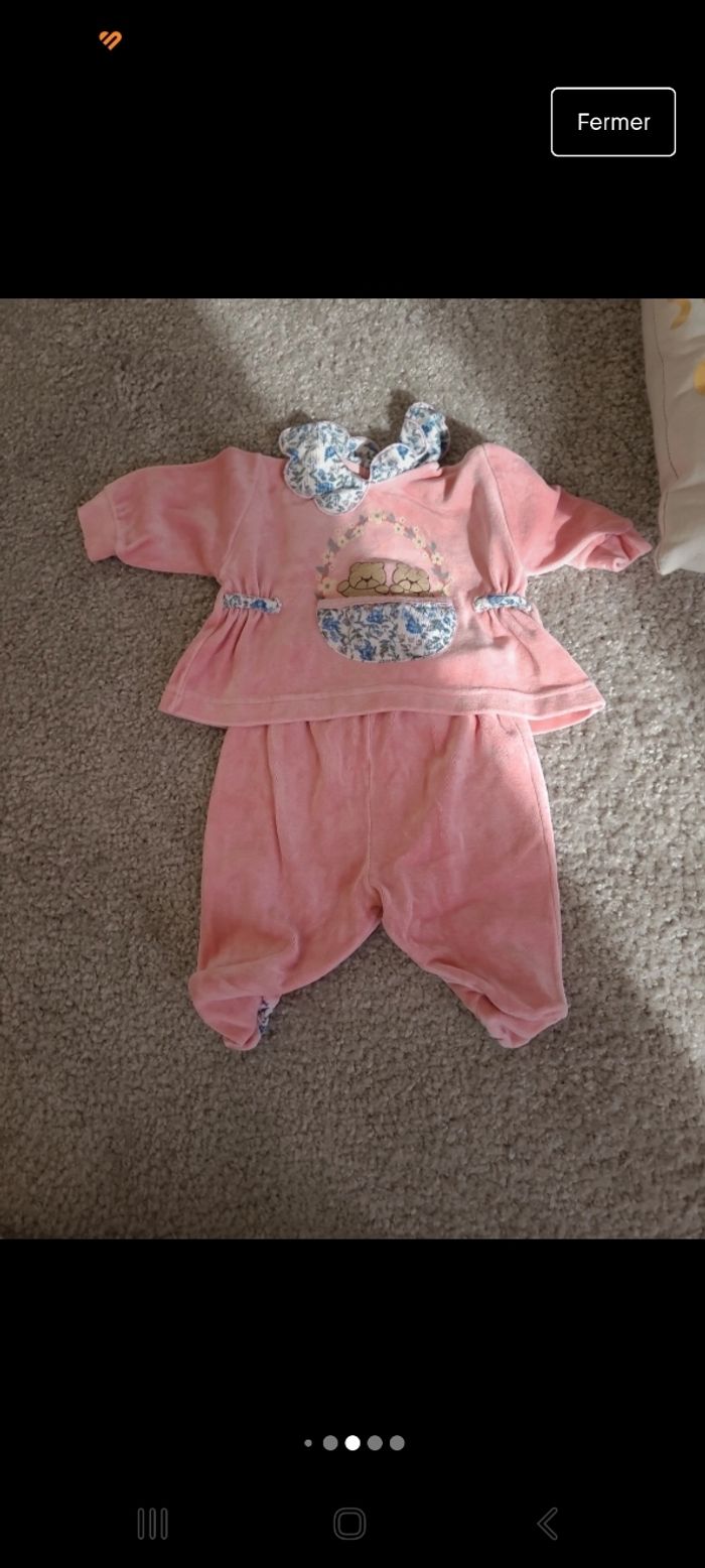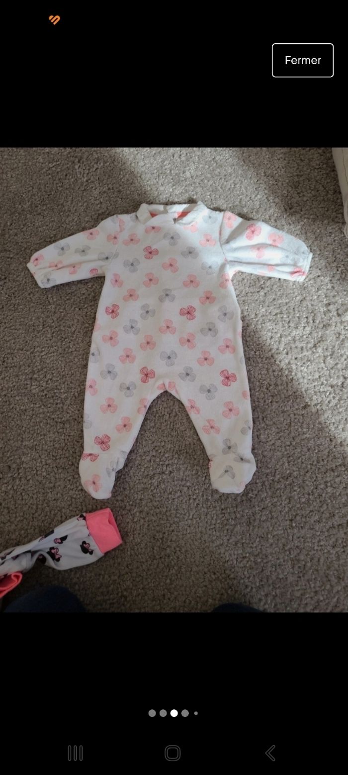Lots 1 mois 5 bodies blanc 1 pyjama manche courte 1 pyjama velours 2 pantalon velours 1 pyjama 2 piece velours 2 pyjamas léger 1 veste jean 1 gilet 1 gilet moumoute 1 ensemble léger (taché) Plusieurs marque dispo orchestra obaibi Disney baby kiabi vertbaudet etc.