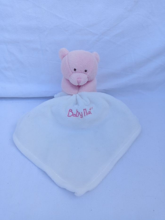 Ourson rose carré tissu baby nat' 23 cm - photo numéro 1