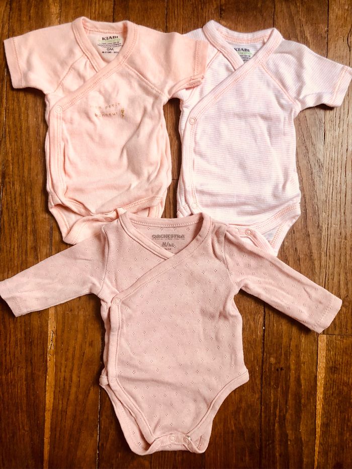 Lot de 3 bodys taille Naissance: - 2 bodys manches courtes Kiabi éco conception dans les tons orangé - 1 body manches longues Orchestra vieux rose Très bon état 🌸 D’autres articles taille Naissance, 1 mois, 3 mois et 6 mois dans mon dressing. Réductions sur les lots 🌸
