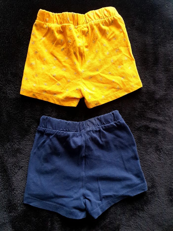 Lot de 2 shorts jaune moutarde et bleu marine . Peu portés. Très bon état. Marque Kiabi. Taille 18 mois.