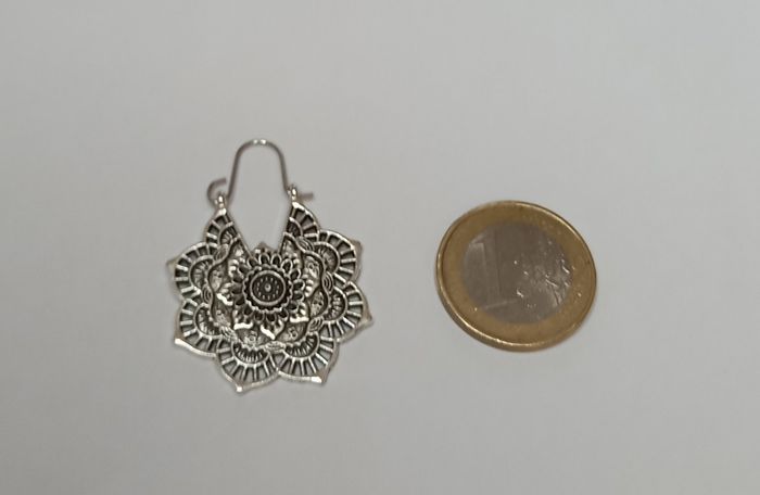 1 jolie paire de boucles d'oreilles mini creole motif mandala. Diamètre : 3 cms. Hauteur avec l accroche : 4 cms. Boucles neuves sous blister. N'hésitez pas à regarder mes autres ventes . Envoi rapide et soigné