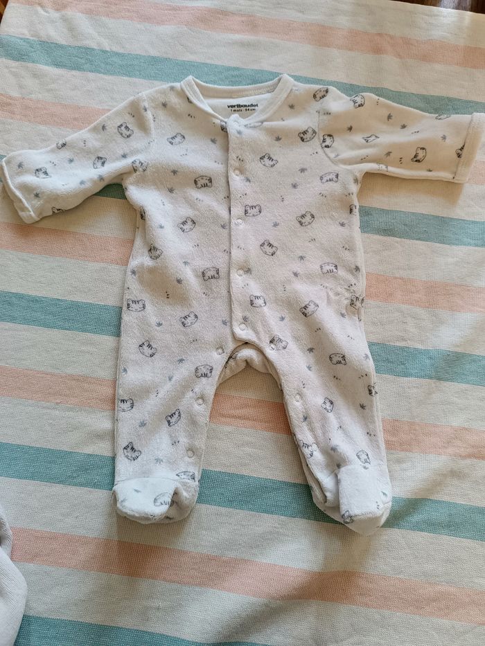 Lot très bon état de pyjamas en velours. Marques Verbaudet, Gémo.. Maison non fumeurs sans animaux. Lot de body 1 mois manches longues disponible dans mon dressing.