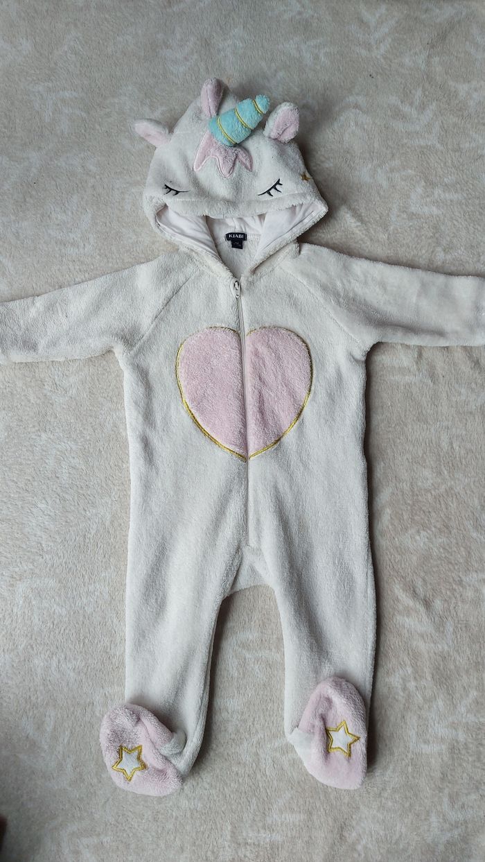 Pyjama combinaison licorne zippé devant. Très peu portée en très bon état. Kiabi, 9 mois.