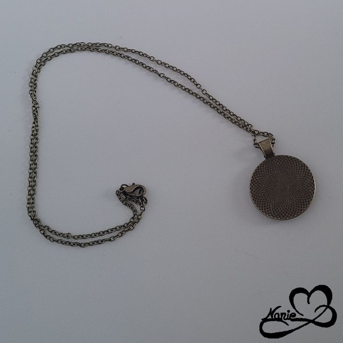 Sautoir, en acier inoxydable couleur bronze et en resine, noir pailletée avec des feuilles dorées - photo numéro 4