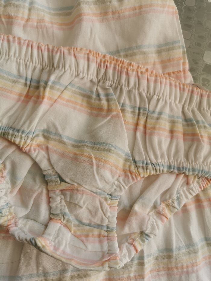 Robe bébé blanche à rayures, avec culotte (jamais porté) Robe en très bon état 74cm Zeeman robd