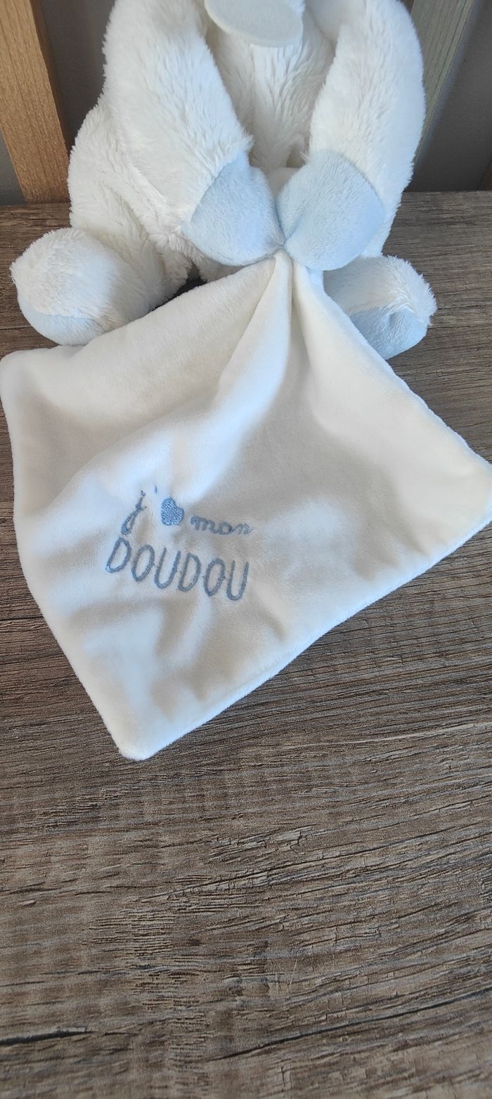 Tbe Blanc écriture bleu J aime mon doudou Ours doudou et compagnie 15 euros Envoi en relais