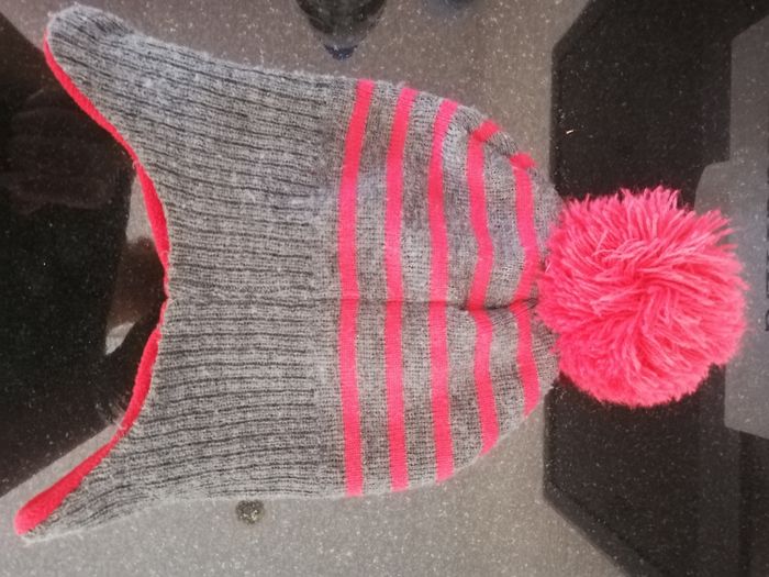 Bonnet pompon Rouge et gris 2-3ans Très bon état J'ai d autres vêtements enfants