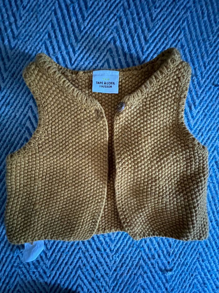 Maille sans manche couleur jaune moutarde Taille 1/3 mois