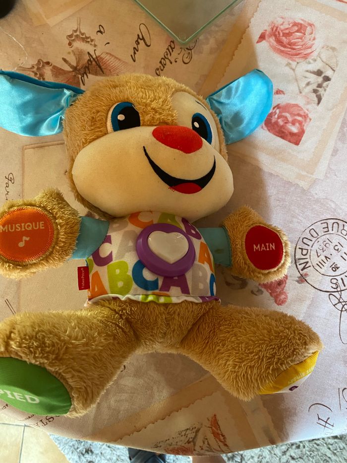 Fisher-Price Puppy Eveil Progressif jouet bébé, peluche interactive, plus de 75 chansons et 3 niveaux d'apprentissage, version française, 6 mois et plus.