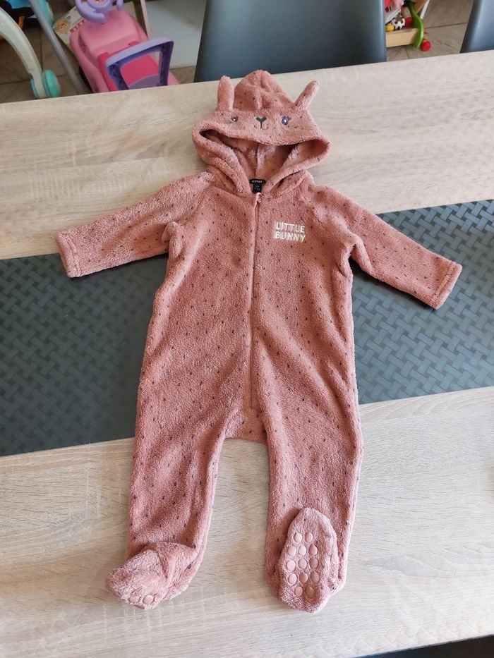 Combinaison polaire couleur rose foncé de kiabi taille 12 mois en très bon état. Avec pied antidérapant