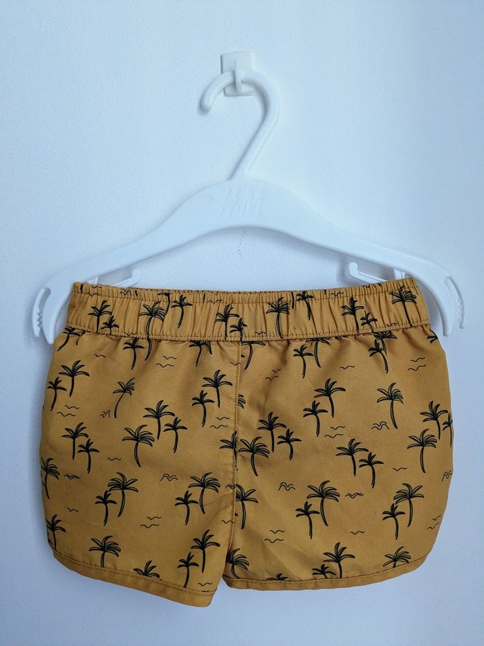 Short 12 mois Kiabi, couleur moutarde, motifs palmier.