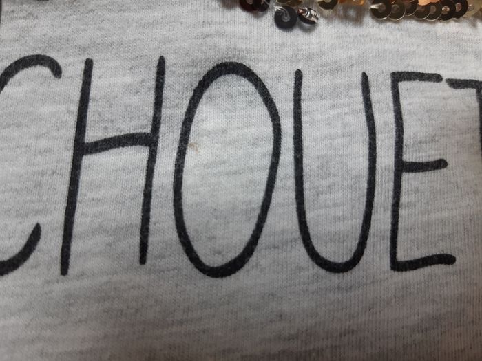 2 toutes petites tâches, 1 dans le "O" de la chouette et la 2ème sur une manche.