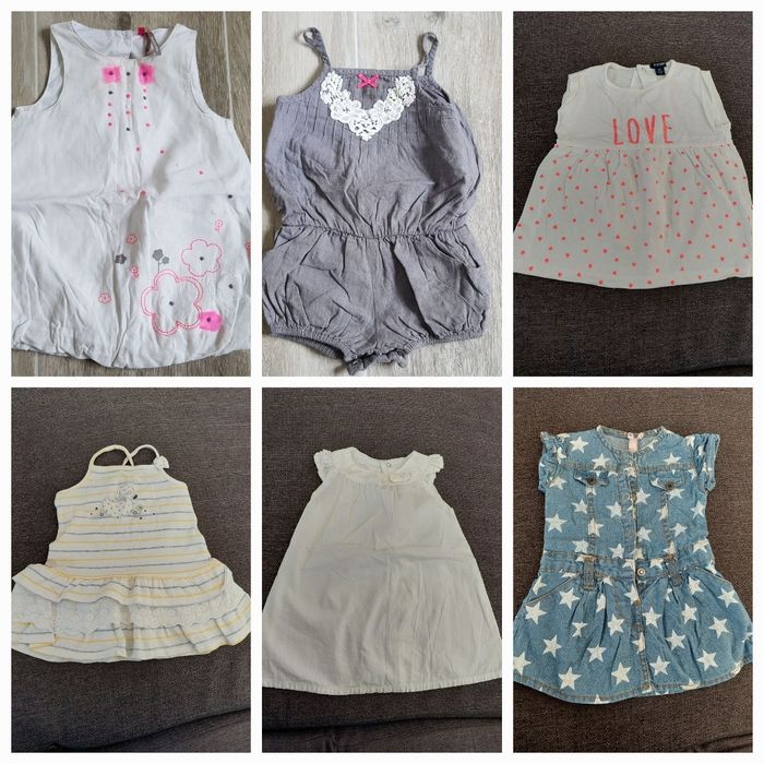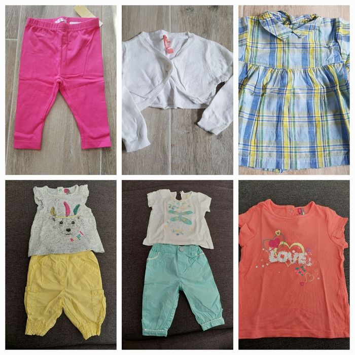 Lot été 9 mois composé de : Gilet court / boléro avec 1 bouton. Miss cutie, 9-12 mois T-shirt manches courtes avec 3 pressions dans le dos. Orchestra, 9 mois Combi short à bretelles avec pressions entre les jambes. Broderie au niveau de l'encolure. Orchestra, 9 mois Robe en jean ⭐. Pressions sur le devant. Passants pour la ceinture. Miss Cutie, 9 mois Ensemble Orchestra composé d'un t-t-shirt sans manche avec volants, et d'un pantacourt avec taille élastique. Très bon état Tunique Naf Naf. Neuve, jamais mise. 9 mois Legging neuf, avec étiquette. Taille élastique. 6-9 mois Robe à bretelles croisées, volants sur le bas. Motif 🦆 Tâches jaunâtres au niveau de l'encolure. Orchestra, 9 mois Robe à bretelles larges, fleurs 🌸 en tulle et brodées. Boutons dans le haut du dos. Orchestra, 9 mois Robe d'été motifs ❤ pailletés et inscription LOVE pailletée. Pressions dans tout le dos. Kiabi, 9 mois Robe sans manche, pressions dans tout le dos. Petit noeud sur l'encolure. Une petite tâche sur le devant. Kiabi, 9 mois Ensemble composé d'un t-shirt à manches courtes 🦋 et d'un pantalon léger avec taille réglable. Traces jaunâtres sur le col du t-shirt. In extenso, 74 cm #9moisaurelilou34