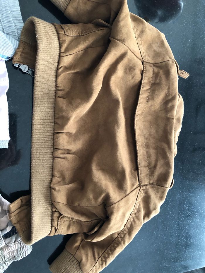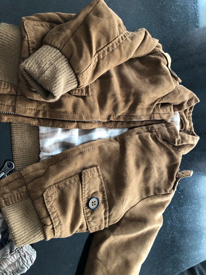 Lot composé d’un pantalon IKKS, d’un T-shirt Zara et d’un petit blouson Zara, le petit blouson manque un bouton 6.9 mois
