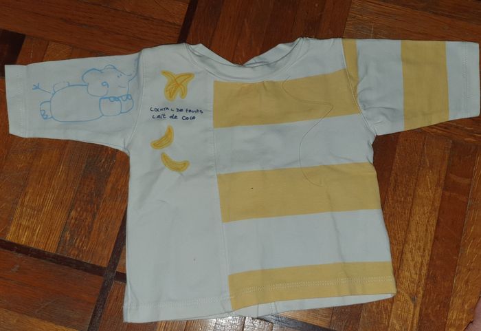 ^Tee shirt manche longue en bon état, taille 0 mois de la marque Marèse. Il y a des boutons tt le long du dos et 2 ptes tâches ( voir la 2ème photo )