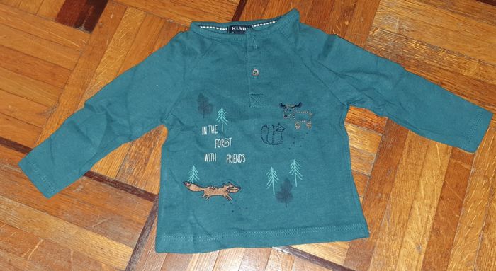 ^Tee shirt manche longue taille 3 mois de la marque Kiabi, neuf jms porté... Forcément j'avais pris des manches longues ms le soleil est arrivé trop vite et il est né au mois de mai mon bébé 🙂🙃