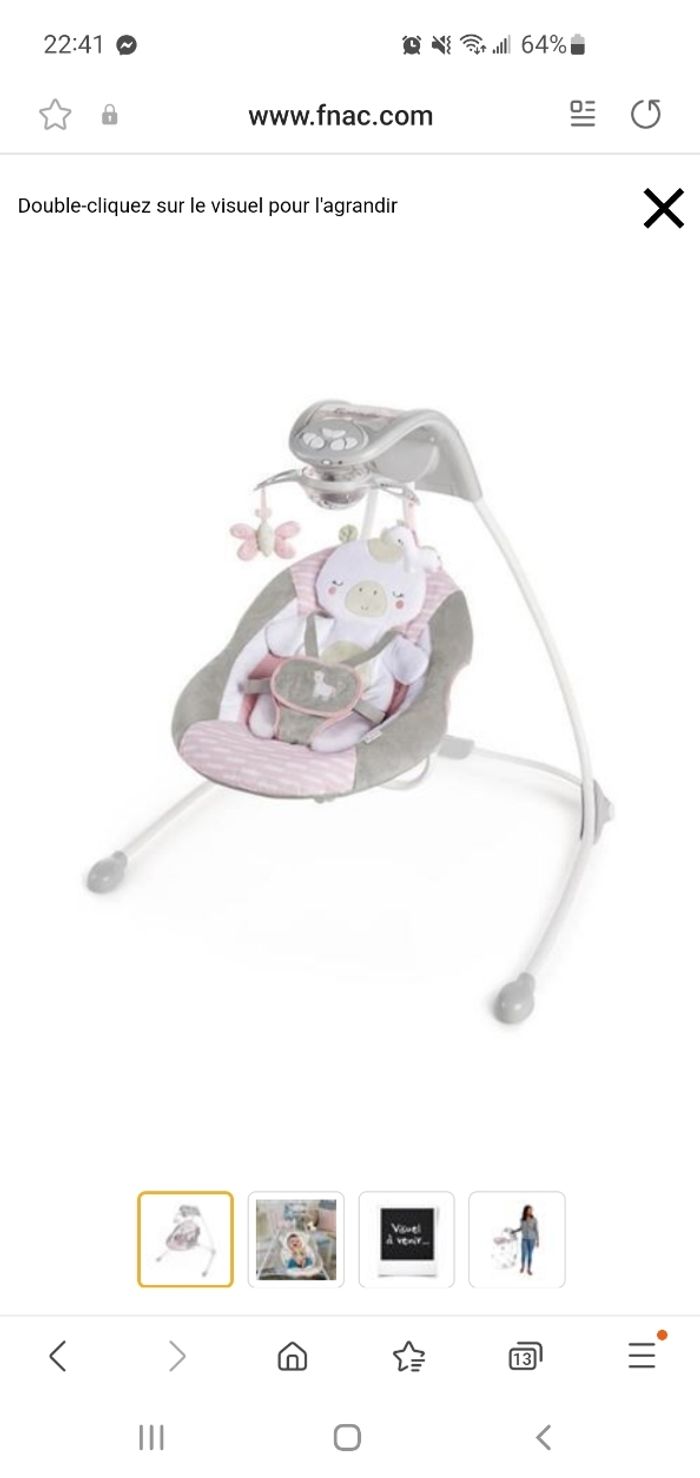 Remise main propre proche Annecy Excellent état, fonctionne parfaitement Dossier réglable , mobile lumineux, berceuse et bruit blanc , possibilité de brancher un téléphone pour de la musique , plusieurs vitesses de bercements . A venir chercher en main propre