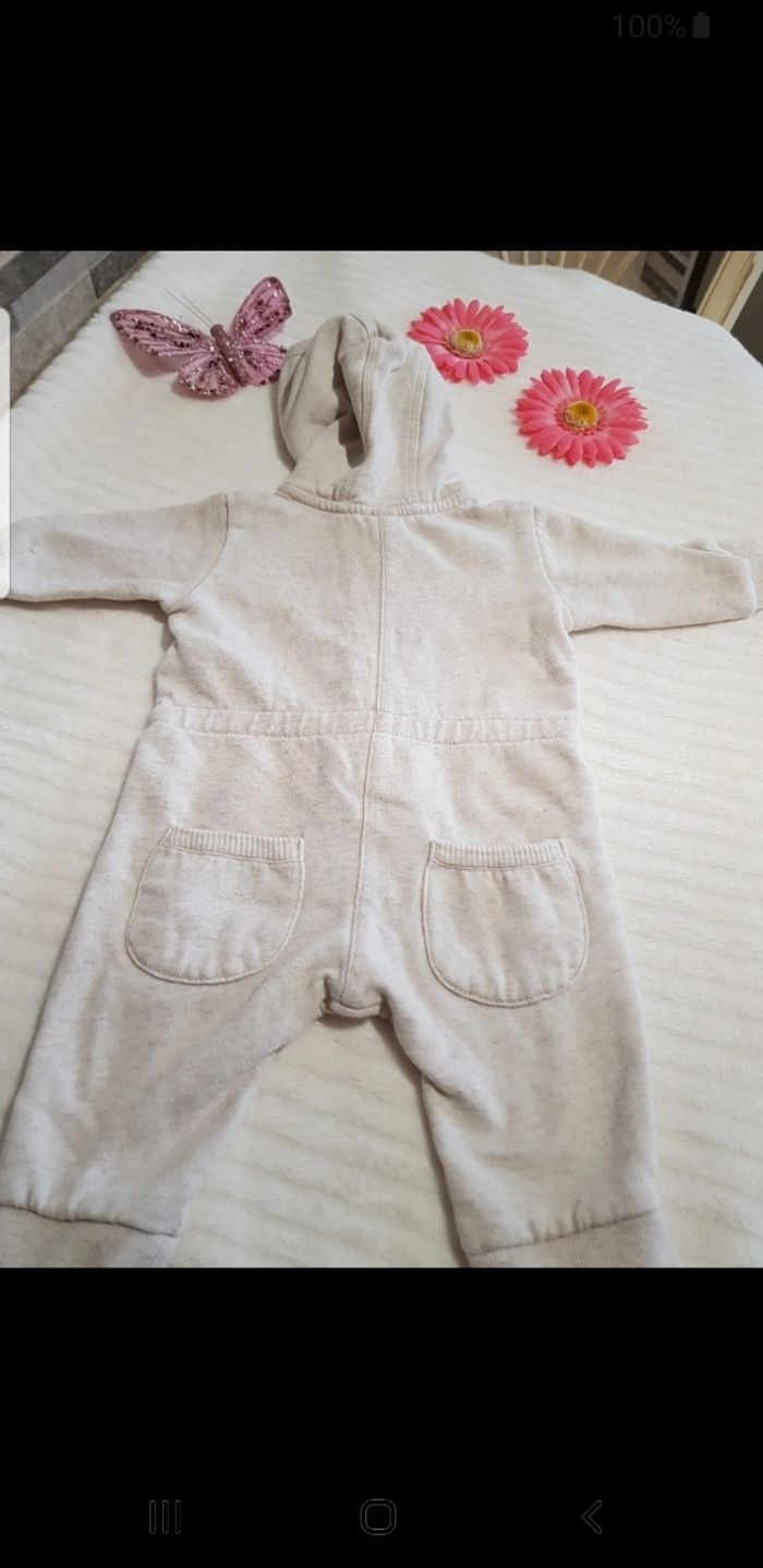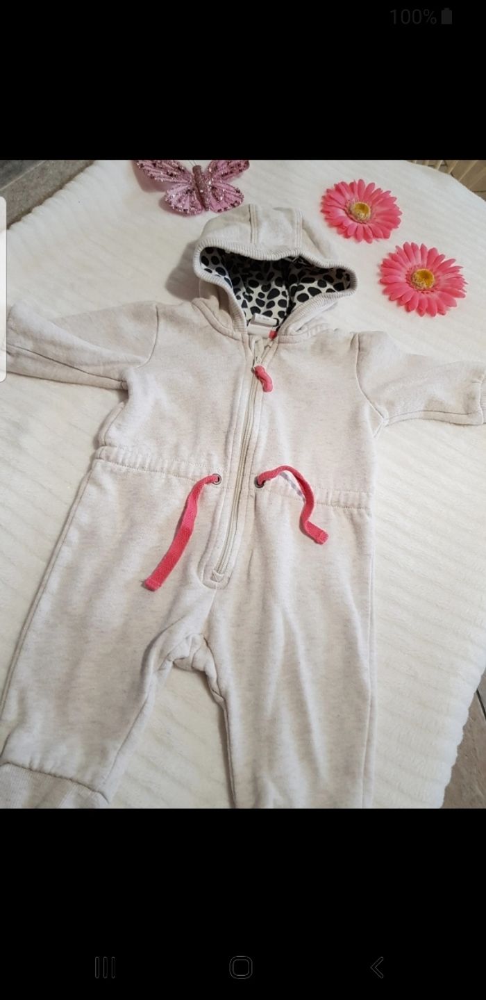 Petite combinaison avec capuche. Zippée à l avant et cordon à la taille. Sans pieds