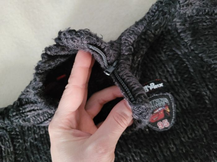 pull épais cars disney 3 ans tirette sur le col pour mieux passer la tête en très bon état gris