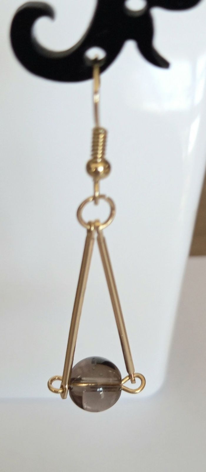 1 jolie paire de boucles d'oreilles coloris doré longues tiges + perle marron transparente. Hauteur : 5,5 cms. Boucles neuves sous blister. N'hésitez pas à regarder mes autres ventes. Envoi rapide et soigné.