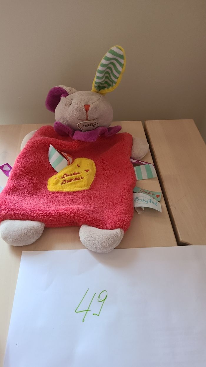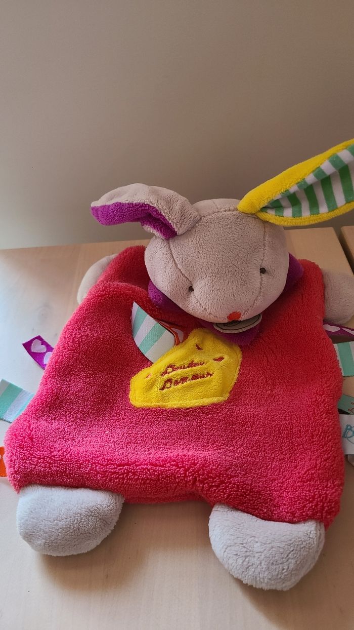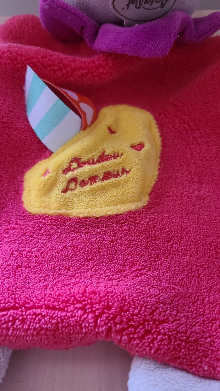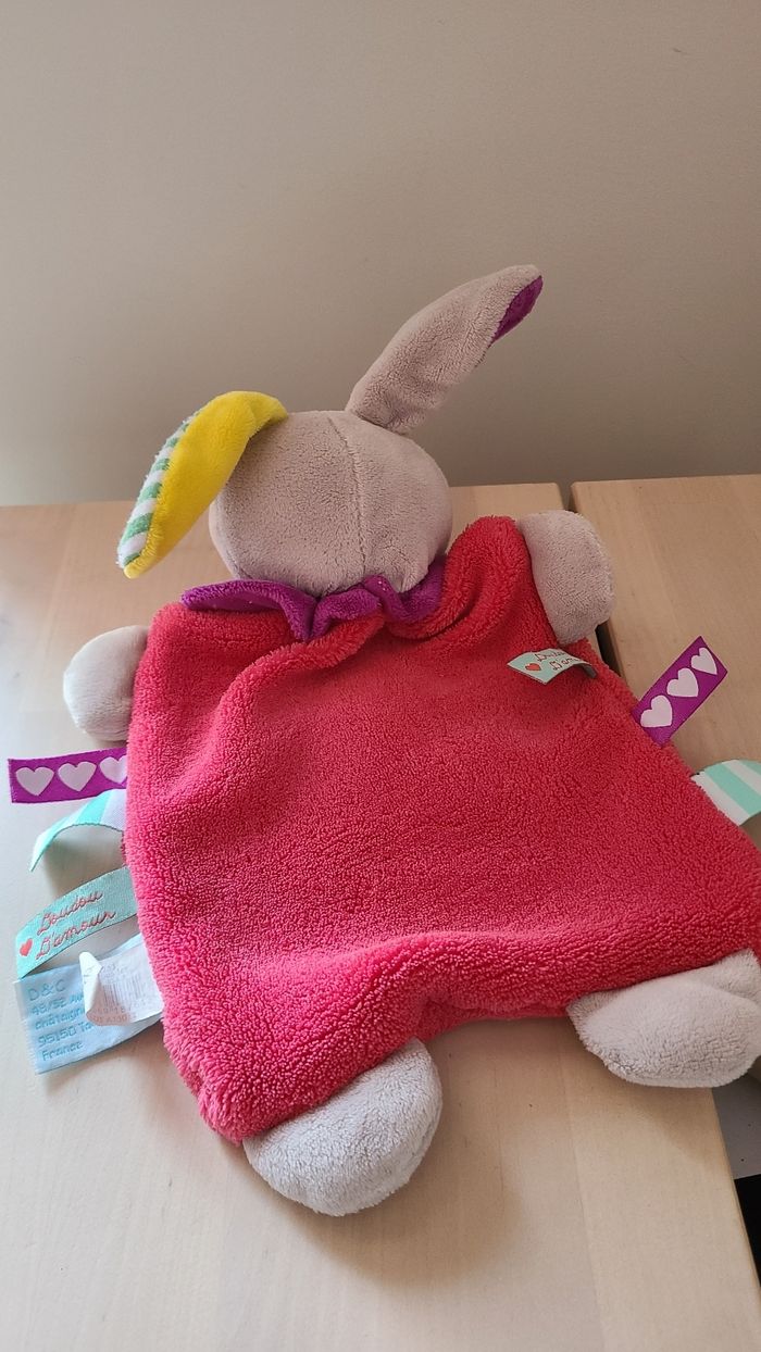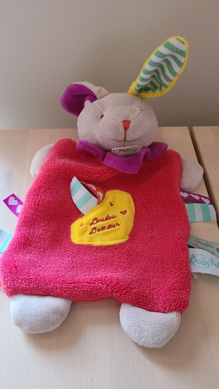 Babynat Doudou plat lapin rose jaune étiquette les zétik't