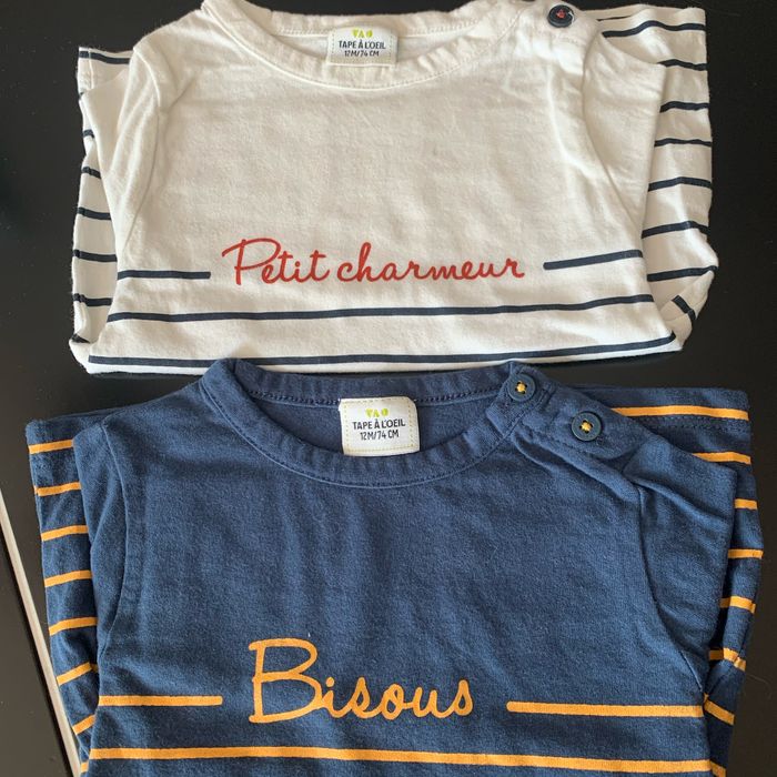 Lot 2 t-shirt ML TAO 12 mois Petit Charmeur & Bisous - photo numéro 1