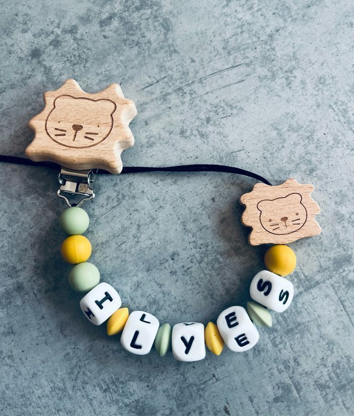 Attache tétine personnalisé en silicone ou en bois au souhait de l’acheteur . Personnalisable au choix de l’acheteur que ce soit la couleur comme le prénom ou le thème . Le fil est doublé pour plus de sécurité tout le long de l’attache tétine. N’hésitez pas à me demander et regarder mon dressing. Une photo vous sera envoyée avant l’expédition pour vous ayez un aperçu du rendu. Tous les produits sont réalisés avec du materiel spécial conçu aux bébés , enfants.