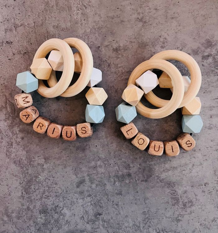 Hochet personnalisé en silicone ou en bois au souhait de l’acheteur . Personnalisable au choix de l’acheteur que ce soit la couleur comme le prénom ou le thème . Le fil est doublé pour plus de sécurité tout le long de l’attache tétine. N’hésitez pas à me demander et regarder mon dressing. Une photo vous sera envoyée avant l’expédition pour vous ayez un aperçu du rendu. Tous les produits sont réalisés avec du materiel spécial conçu aux bébés , enfants.