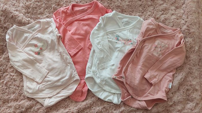 Lot de 4 bodie manche longue fille. En très bon état Marque p'tit bisous