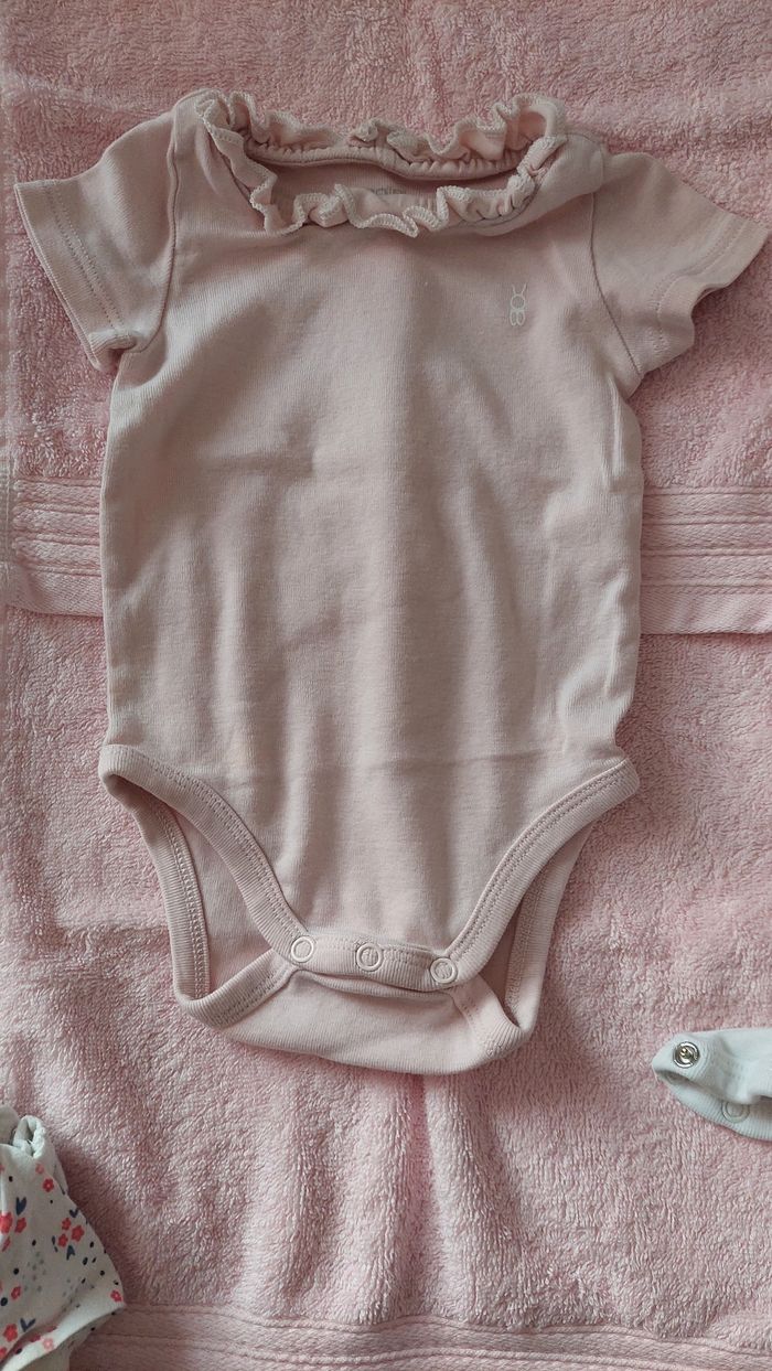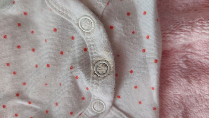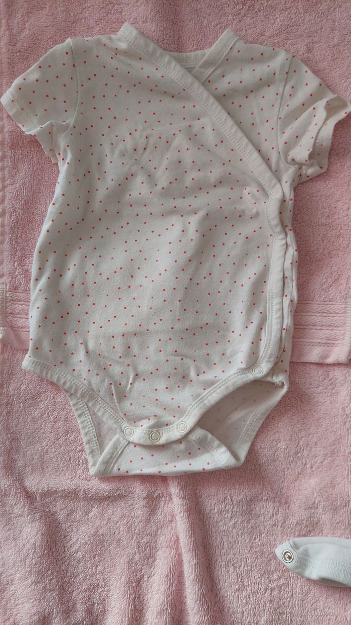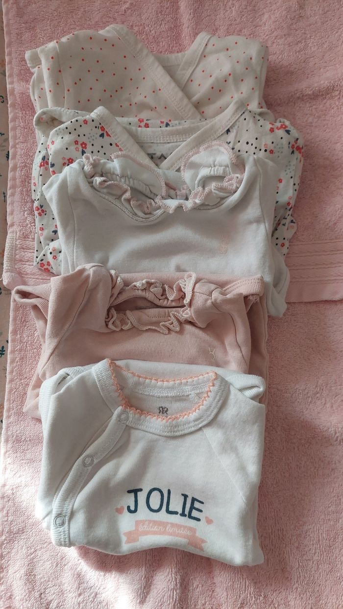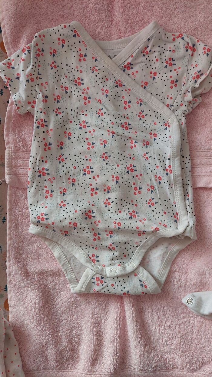 Lot de 5 bodies manche court, Différentes marques: 2 okaidi le rose et le blanc 1 la redoute jolie 2 tape à l'oeil le motif a fleurs et blanc à pois rouges. ⚠️ Attention ⚠️ Il y a 4 bodies en très bon état et 1 avec une tâche au niveau des pressions le blanc à pois rouges. Taille 6 mois