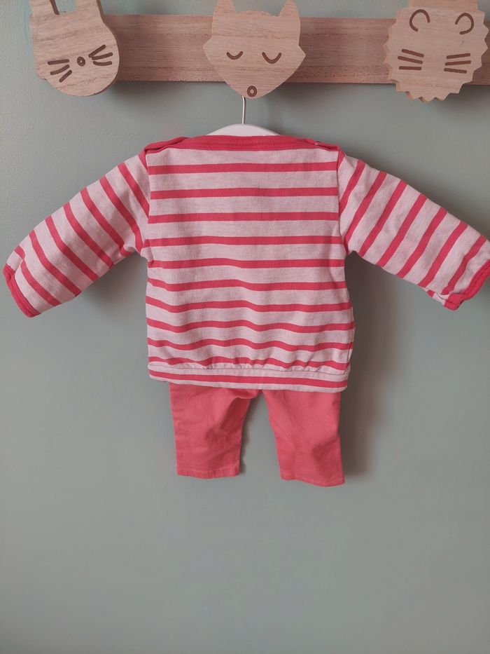 Ensemble comprenant: 1 pull petit bateau Taille 3 mois 1 jean's okaidi taille 3 mois En très bon état