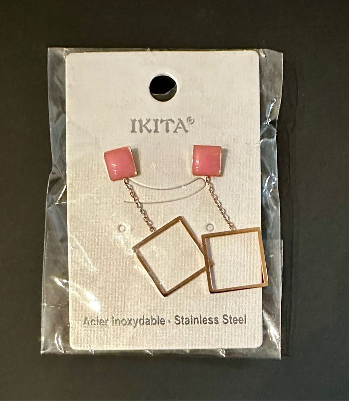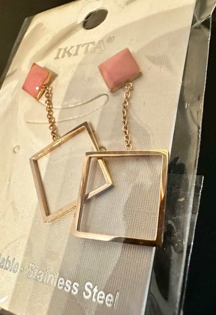 Boucle d’oreille rosé « Carré » neuve. Acier inoxydable