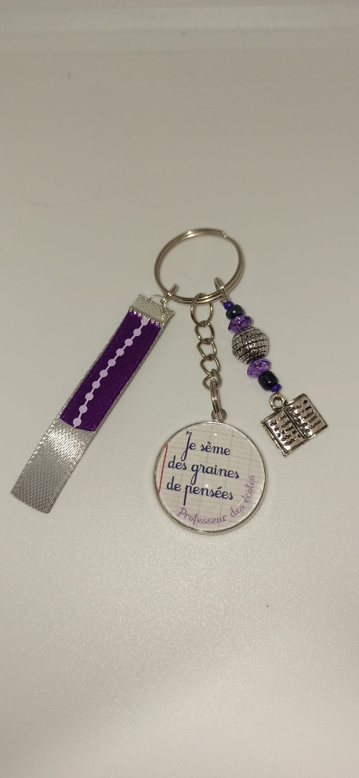 Cabochon en verre. Breloque livre Rubans et perles violet et gris