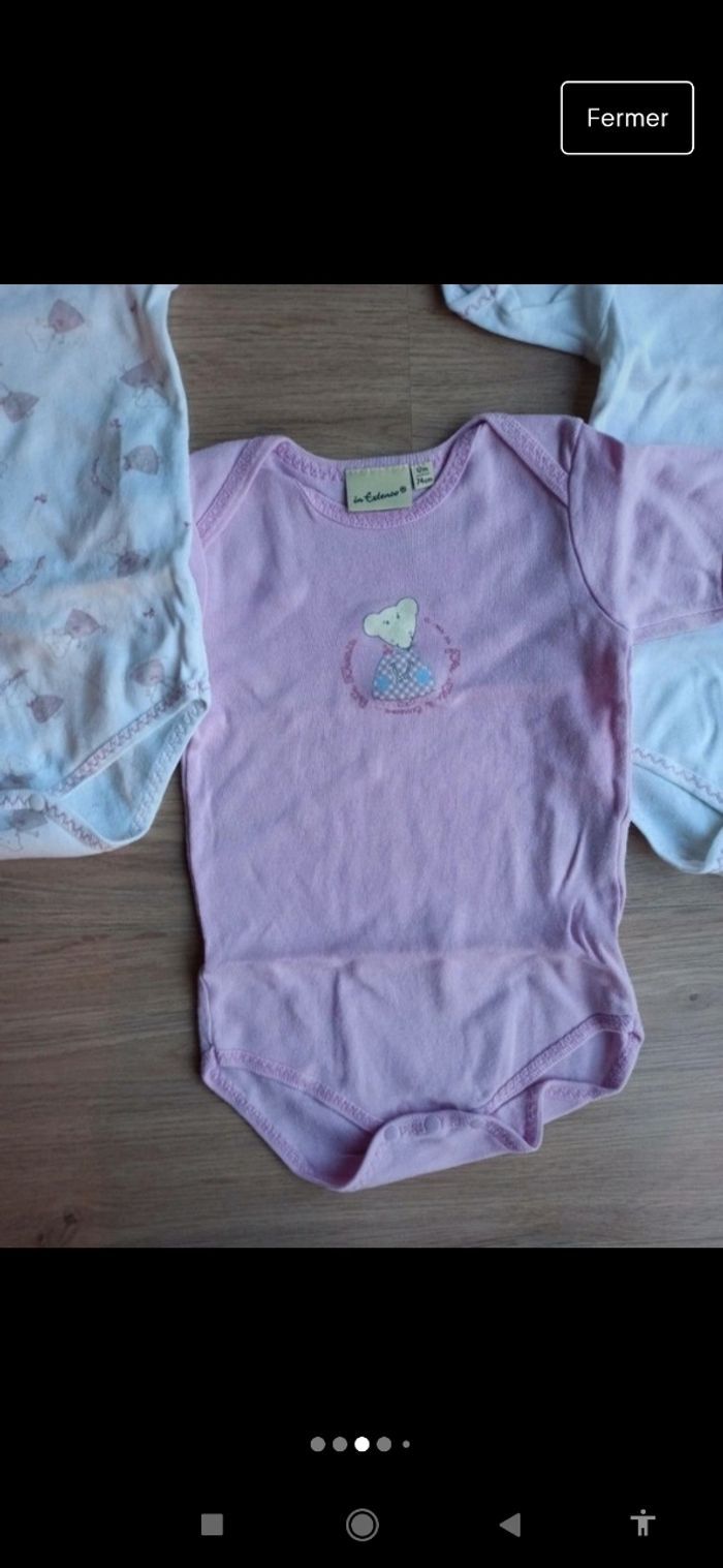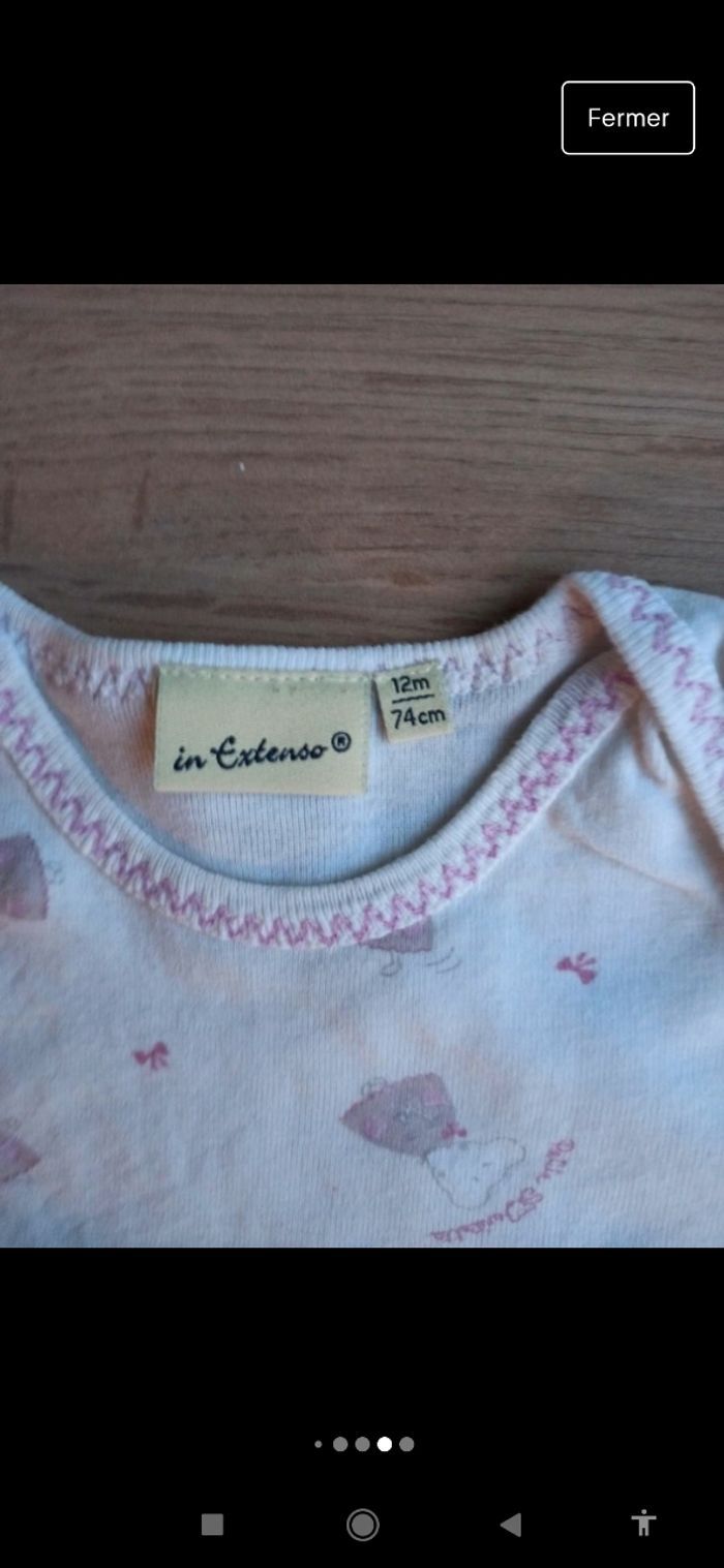 3 bodies 12 mois fille rose et blanc avec petites souris - photo numéro 5