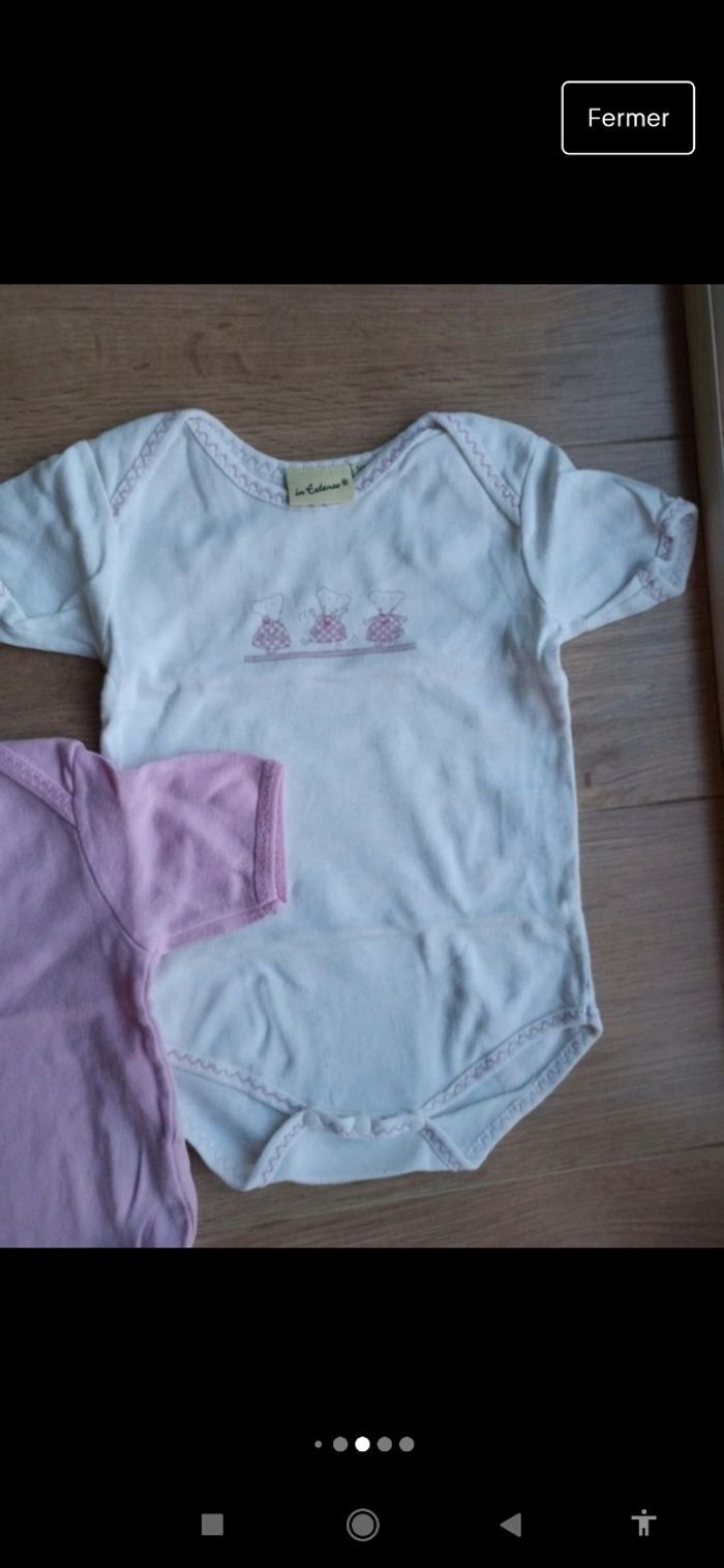 3 bodies 12 mois fille rose et blanc avec petites souris - photo numéro 4