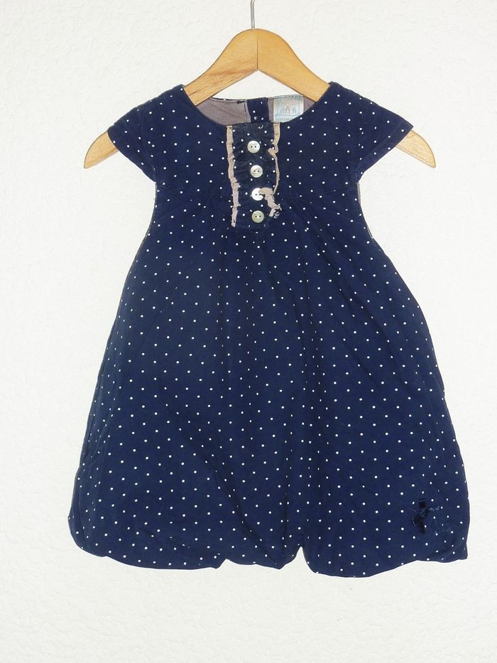 Robe forme boule, doublée, imprimé à pois sur fond bleu nuit
