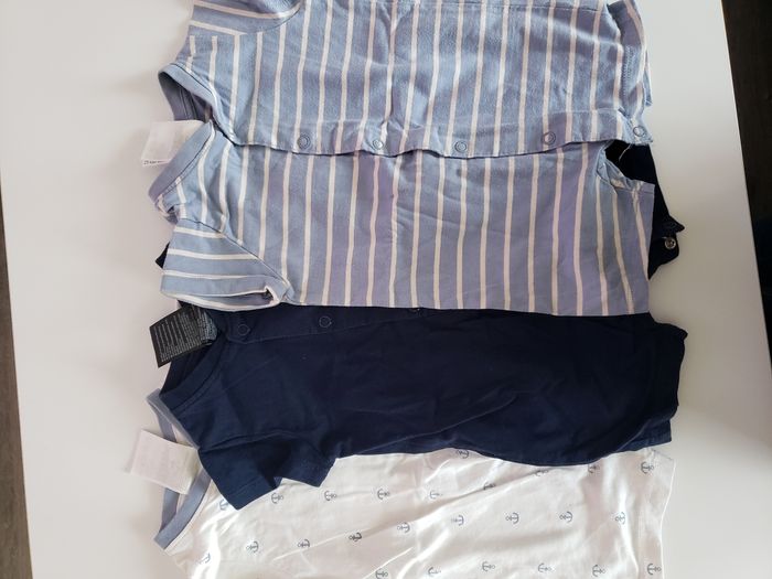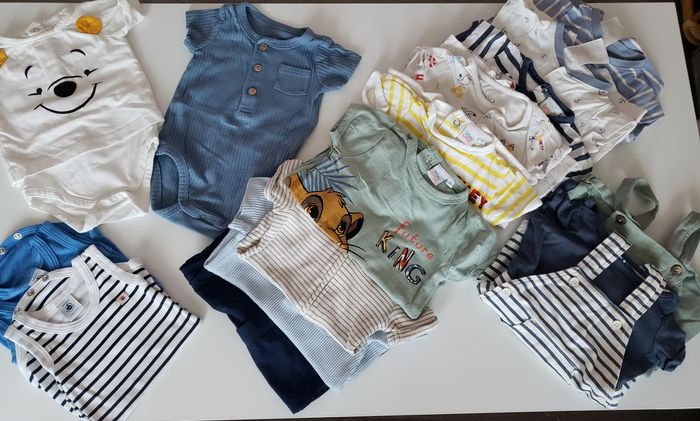 Très beau lot de barboteuses, bodies et salopettes en très bon état du 0 au 3 mois. Comprenant : - 8 barboteuses en taille 3 mois -1 taille 50 cm - 2 bodies débardeur marque petit bateau -1 tee-shirt bodie winnie l'ourson taille 3 mois -1 bodies manches courtes bout'chou 3 mois -1 ensemble salopette tee shirt 50 cm C&A - 1 salopette zeeman 50 cm Le tout est en très bon état.