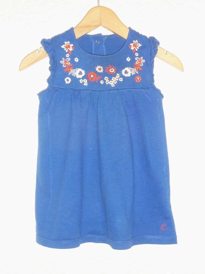 Robe légère de marque petit bateau bleue ornée d'une broderie fleurie