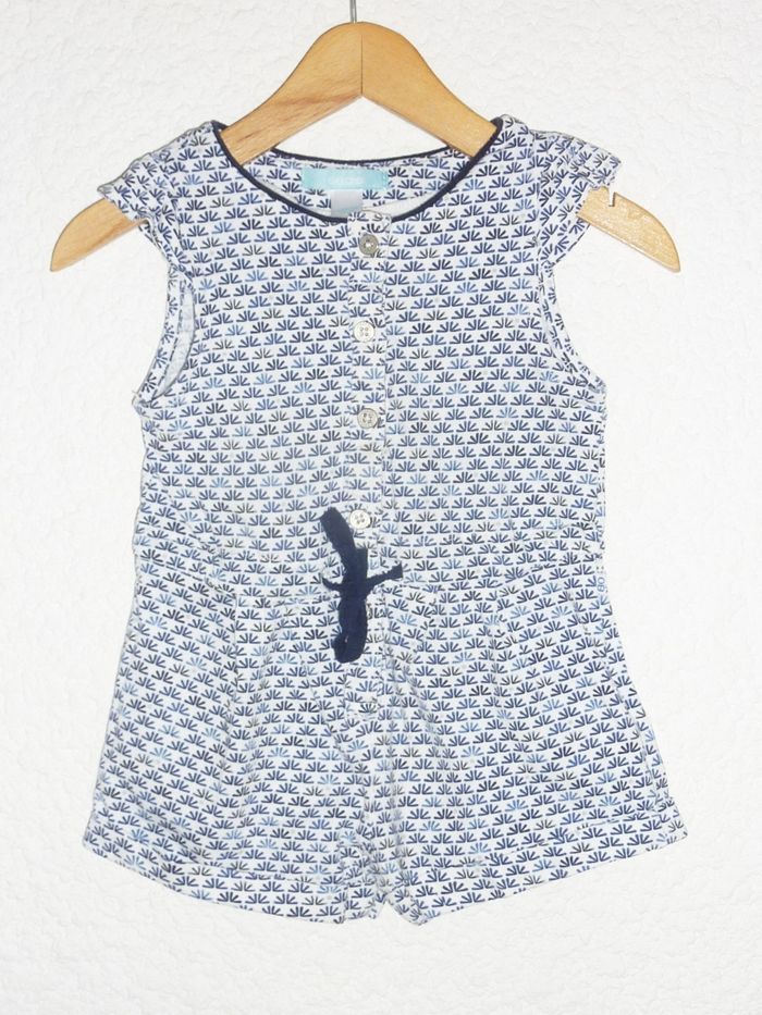 Combishort légère en état excellent imprimé bleu sur fond blanc