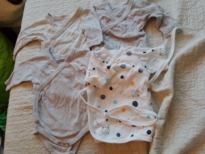 Lot de 3 bodies et une brassière cache coeur Taille 1m Marques diverses