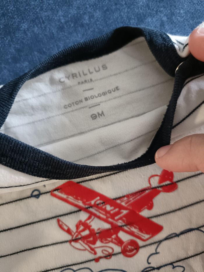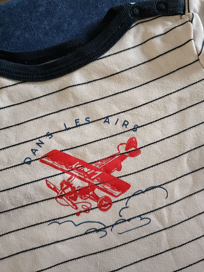 T shirt à manches longues Cyrillus Très bon état Marinière et motif Petit 9 mois